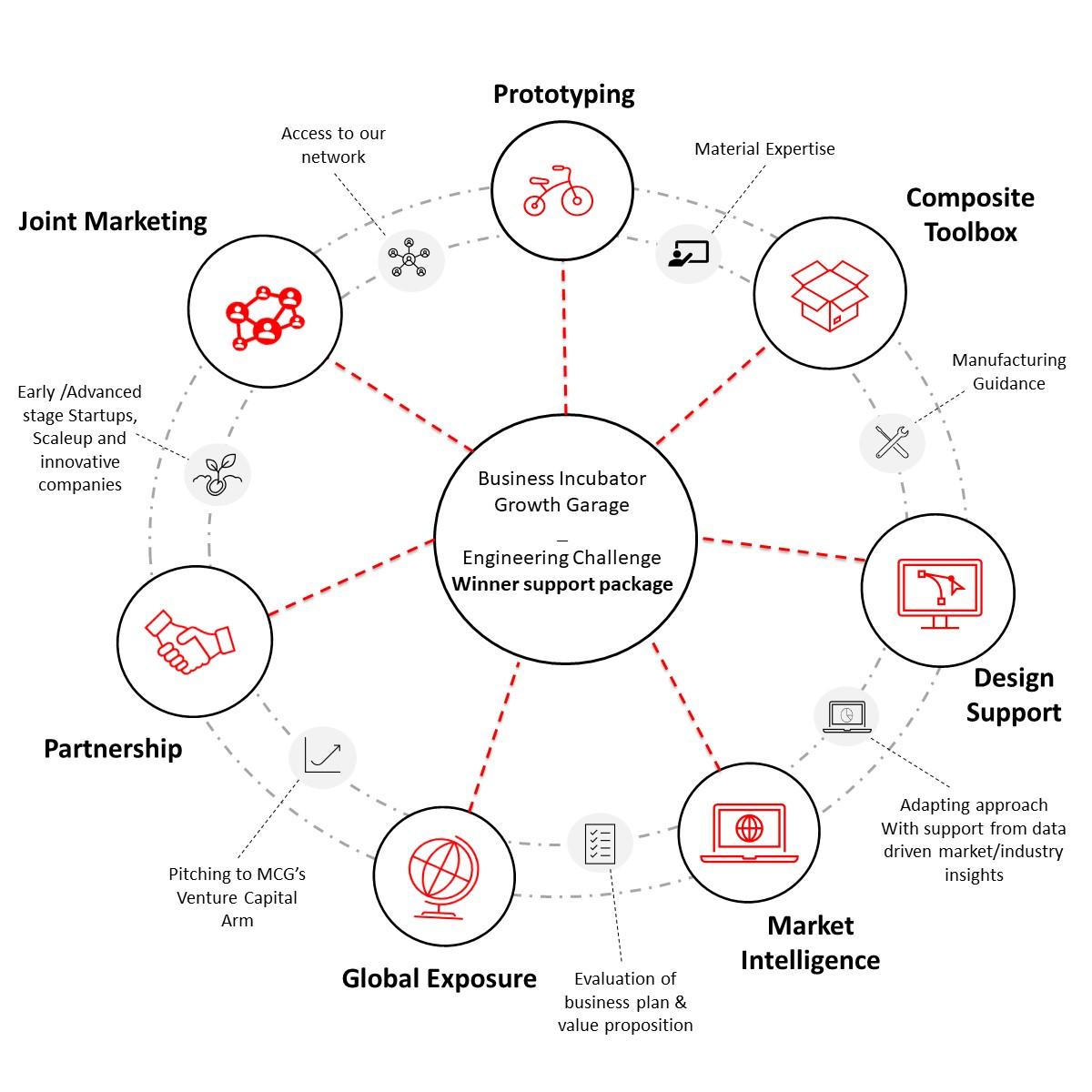 As the winning team you will enter into a partnership with Growth Garage, to develop your product or part in a way that enables you to scale the production whatever stage of production you're in. This includes but is not limited to: