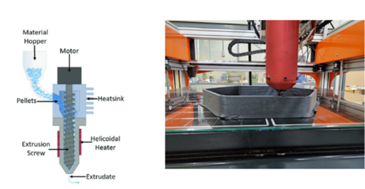 The advantage of using 3D printing with FGF is its ability to produce medium to large sized near net parts which are structurally sound and at significantly high print speeds (compared to filament-based 3D printing).